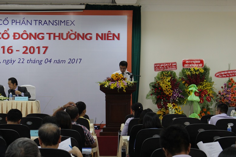 Tại Đại hội, Ban Lãnh đạo Công ty Cổ phần Transimex đã báo cáo trước Đại hội Đồng Cổ Đông các báo cáo: Báo cáo HĐQT; Kết quả hoạt động SXKD năm 2016 và thông qua kế hoạch hoạt động SXKD năm 2017; Báo cáo của BKS, Bầu cử TV.BKS thay thế thành viên đã từ nhiệm và thông qua một số tờ trình liên quan.