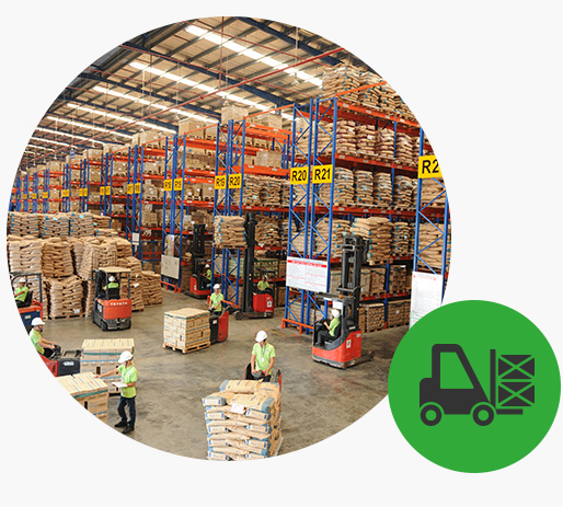 - Hệ thống kho high-dock hiện đại, có tổng diện tích 14,000 m2 với hơn 10,000 pallets