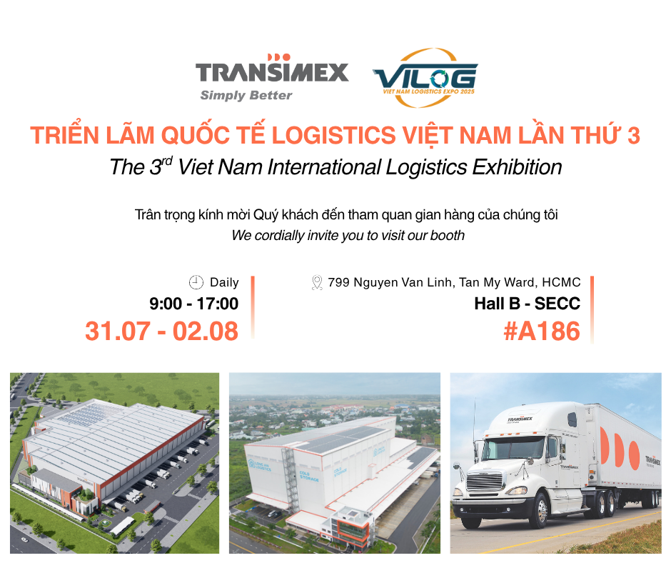 Từ ngày 31/7/2025 đến ngày 02/8/2025, Transimex tham gia Triển lãm Quốc tế Logistics Việt Nam (VILOG 2025) – sự kiện ngành logistics lớn nhất trong năm, diễn ra tại Trung tâm Triển lãm & Hội nghị Sài Gòn (SECC), Thành phố Hồ Chí Minh.